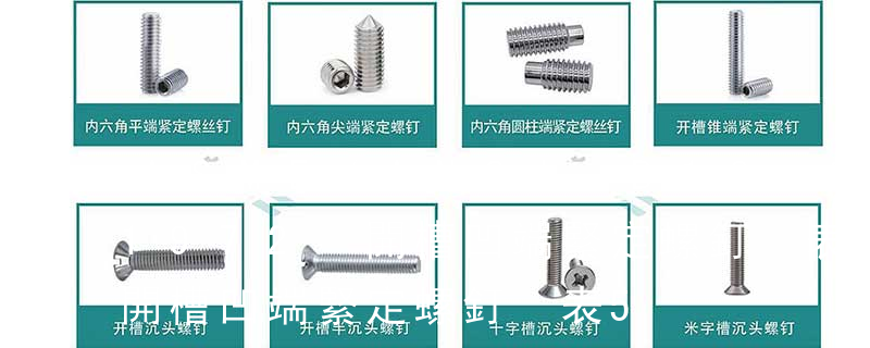 緊定螺釘通常由鋼或不銹鋼材料制造,它的端頭形狀有錐形、凹形、平頭形、圓柱形和階梯形等。錐端或凹端緊定螺釘的端頭直接頂緊零件,一般用于安裝后不常拆卸處;平端緊定螺釘的端頭平滑,頂緊后不損傷零件表面,用于需經常調節位置的聯