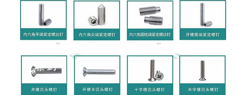 十字槽圓頭木螺釘(GB/T 950-1986) 2-10mm 十字槽沉頭木螺釘(GB/T 951-1986) 2-10mm 十字槽半沉頭木螺釘(GB/T 952-1986) 2-10mm 六角頭木螺釘(GB/T 102-1986) 6-20mm 螺紋釘 螺紋釘釘身有螺紋,咬合力大, 1.滾花高頭螺釘2.滾花平頭螺釘3.滾花小頭螺釘4.塑料滾花頭螺釘2.4.6 定位螺釘1.開槽圓柱頭軸位螺釘2.開槽球面圓柱端軸位螺釘2.5 木螺釘1.開槽圓頭木螺釘2.開槽沉頭木螺釘3.開槽半沉頭木螺釘4.六角頭木螺釘5.十字槽圓頭木螺釘6.