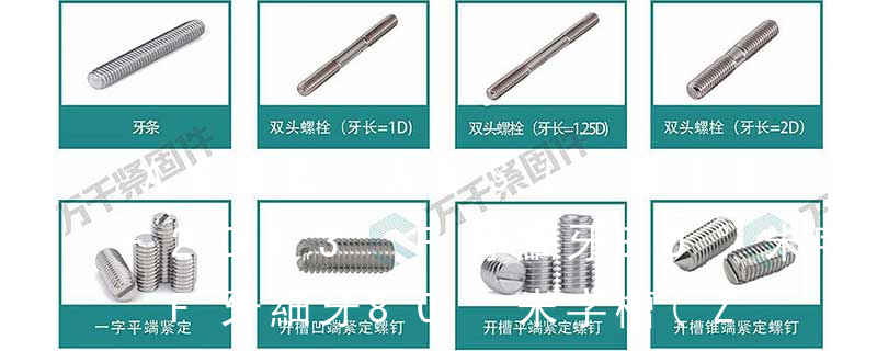 1.機螺釘 2.自攻螺釘 3.鉆尾螺釘 4.墻板釘 5.纖維板釘 6.木螺釘7.六角木螺釘 8.不脫出螺釘 9.組合螺釘 10.微型螺釘 11.家具螺釘 12.電子螺釘頭型:1.六角頭(hexagon head) 2.六角頭法蘭面(hexagon head with flange) 3.